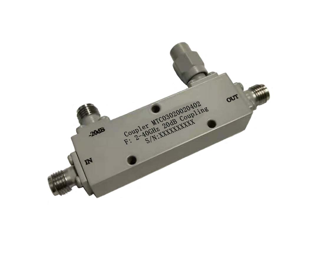 具体型号说明:MTC03020020402,表示为:单定向耦合器,平均功率30W, 耦合度20dB,频率范围2~40GHz,射频接口2.92(F,F)。