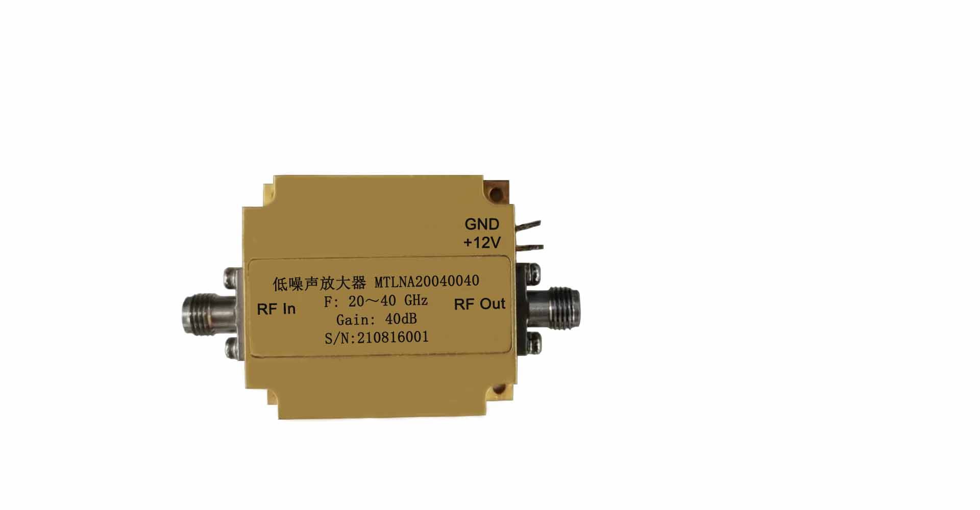 MTLNA001265304 | 0.01~26.5GHz | 30 dB | 2.0 | 20dBm | 22dBm | 3.5dB | 12V | 0.35A | 15dBm | SMA | 065 |